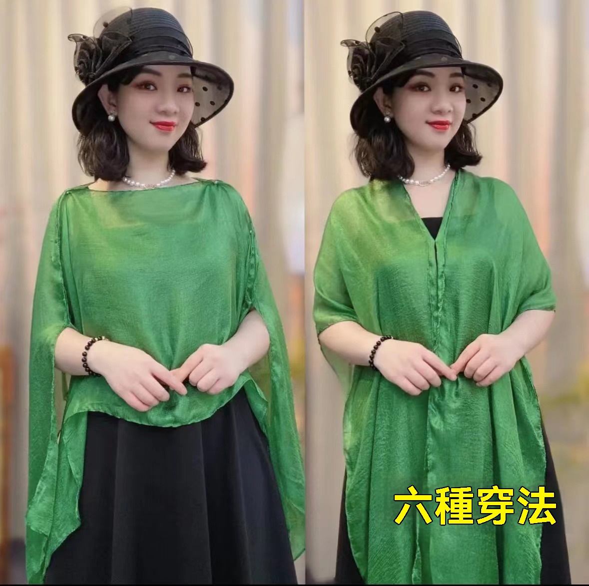 【可可圍巾】六種穿搭風格!夏季高級感爆款時尚,百搭防曬套頭絲巾,披肩純色披肩,外搭時尚百搭套頭披肩絲巾,觀光度假戶外必備