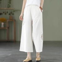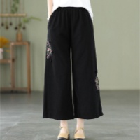 日式純棉麻復古闊腿刺繡褲 25新款夏季棉麻休閒褲 復古民族風刺繡 百搭修身九分褲 多色可選 大碼可穿