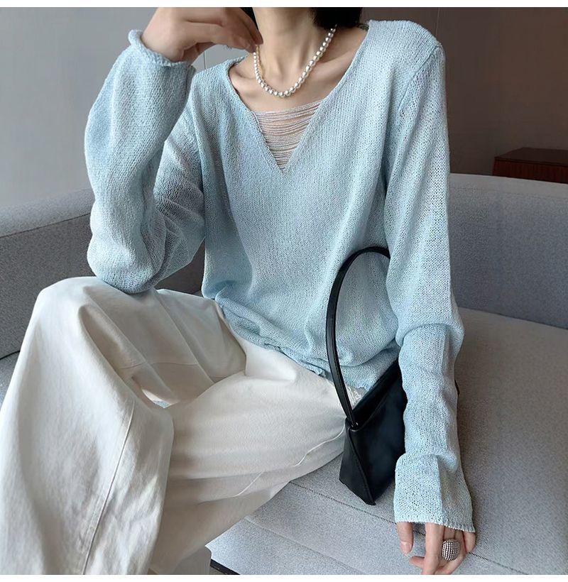 2025秋季新款 韓版百搭洋氣減齡V領針織衫 純色百搭顯氣質 多色可選
