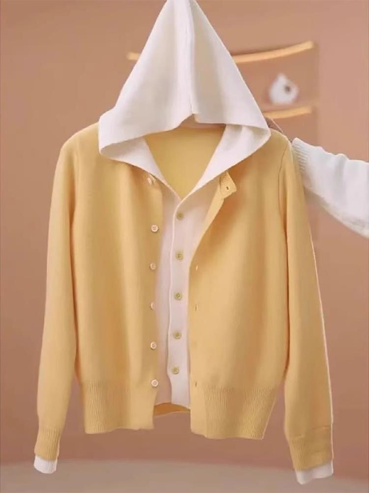 軟糯鎖溫羊毛衫 連帽顯臉小設計 假兩件自帶層次感 日常穿超耐看​