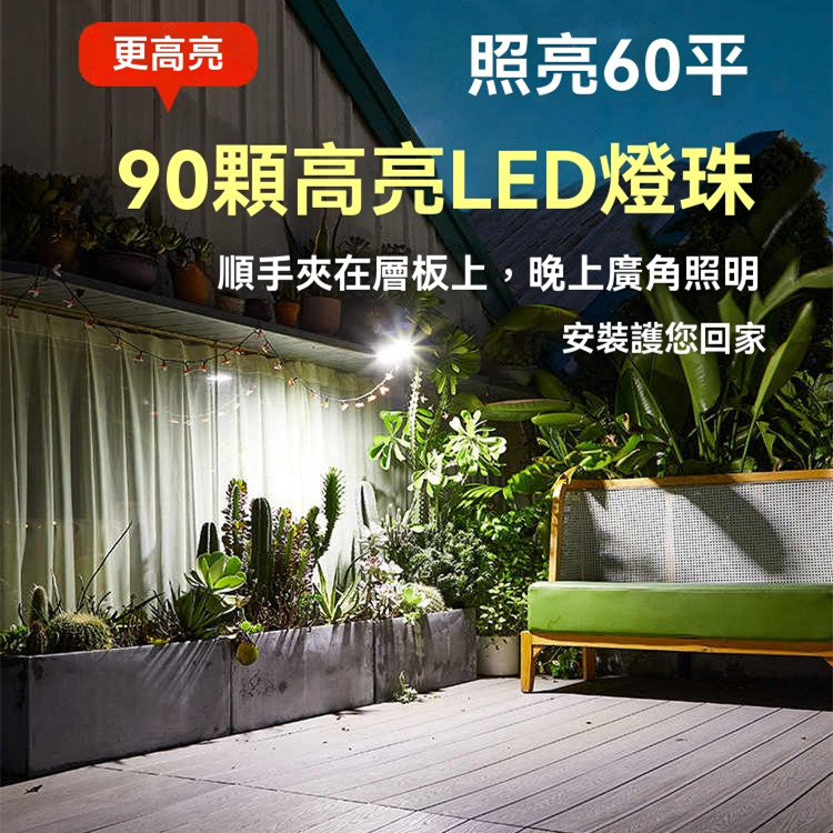 太陽能夾子燈,爆亮聚光,兩種充電模式,全範圍防水,可掛戶外 下雨無懼