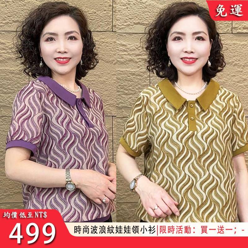 【限時:買一送一】時尚波浪紋娃娃領小衫,不挑年齡不挑身材,洋氣減齡,貨到付款。