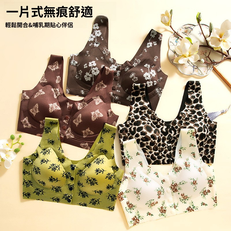 新款媽媽印花流光緞面調整型前扣大碼內衣~無鋼圈~防下垂~聚攏文胸女!