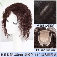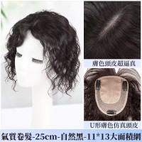 瑞士網全真髮手織捲髮片女士頭頂補髮加髮量蓋白髮蓬鬆自然假髮片