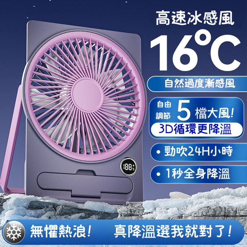 【日韓爆款】小小一台 超大風量 折疊超薄冰感卡片風扇 2000mAh超強續航 無刷靜音馬達 5段風速隨心調節 學生辦公族必備神器