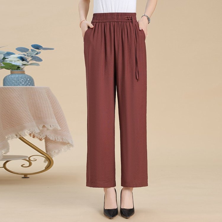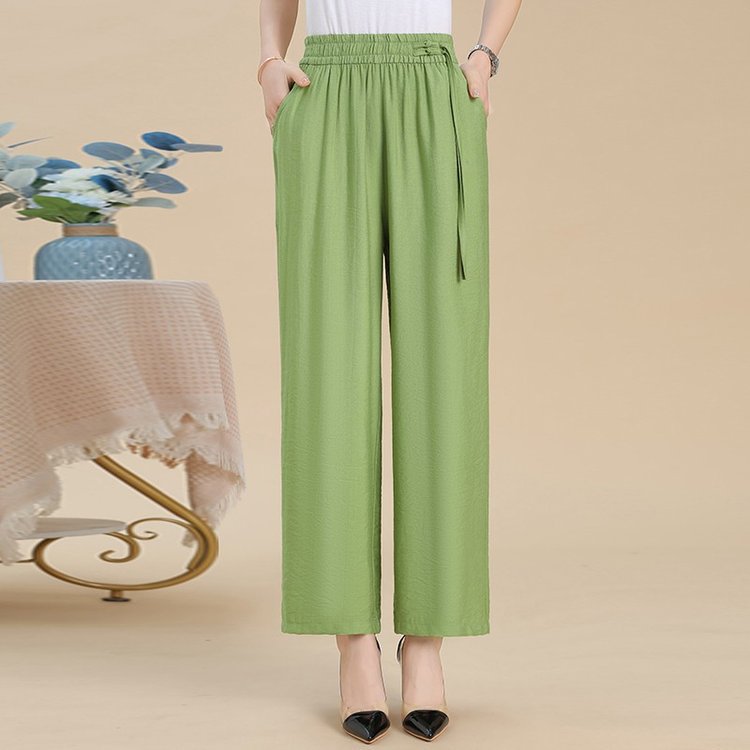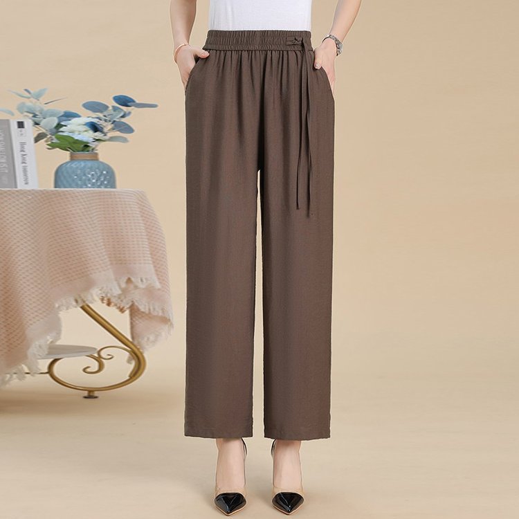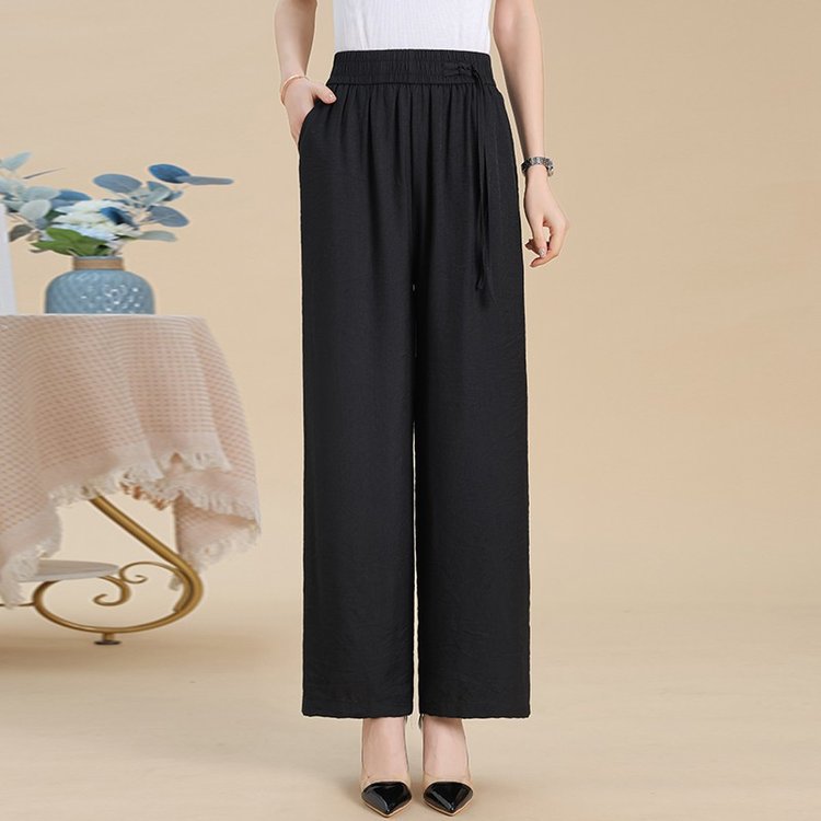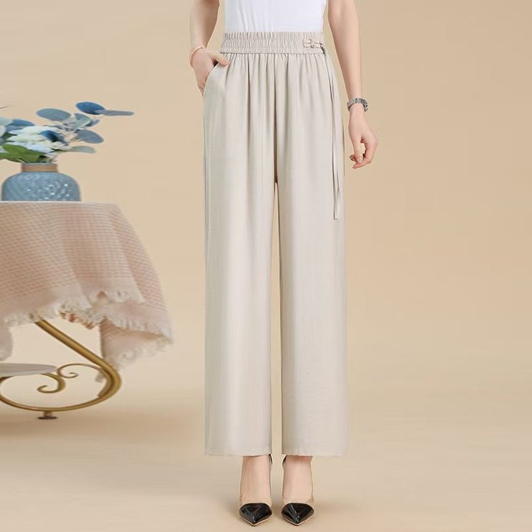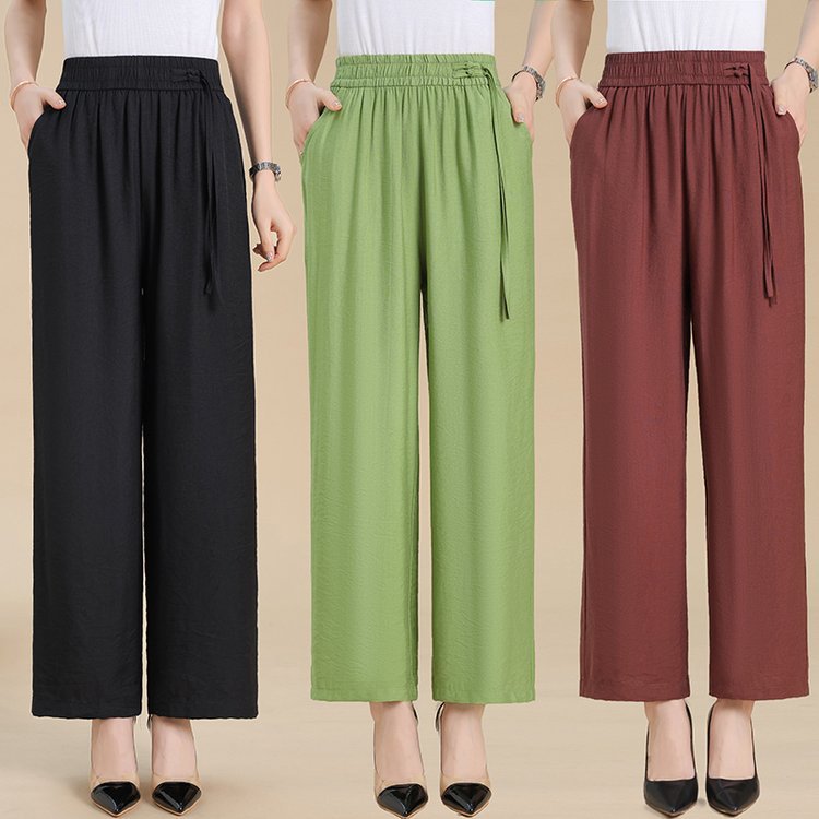 媽媽闊腿褲 高腰鬆緊設計 鬆緊腰不勒腹 寬褲管顯年輕 遮肉顯瘦 三色任選 日常休閒好搭