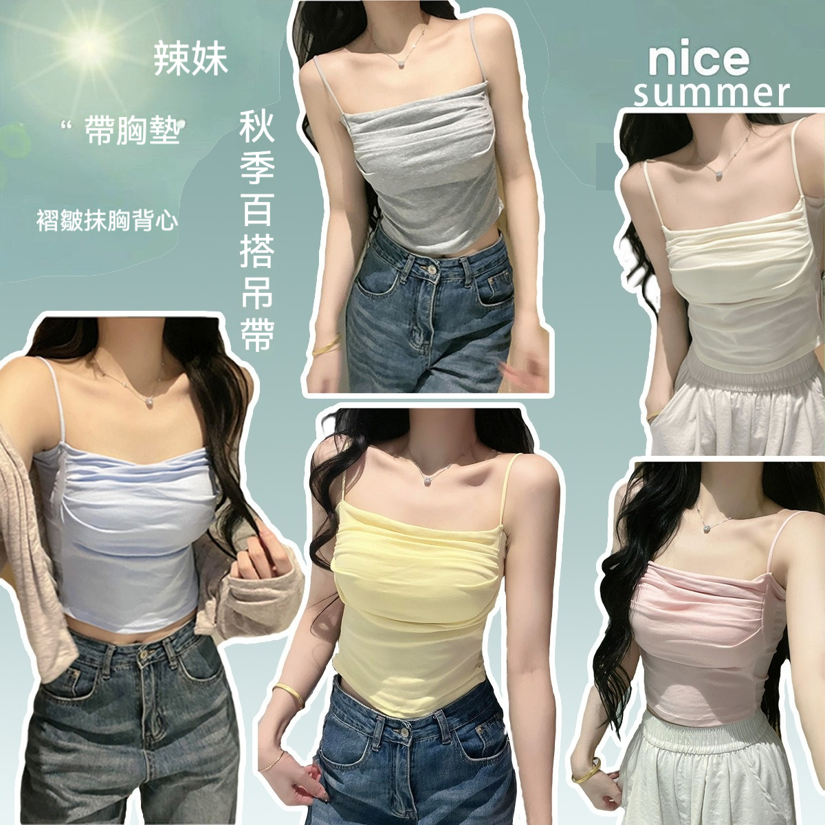 2025新款百搭吊帶背心女秋冬款內搭美背帶胸墊一體遮副乳打底修身