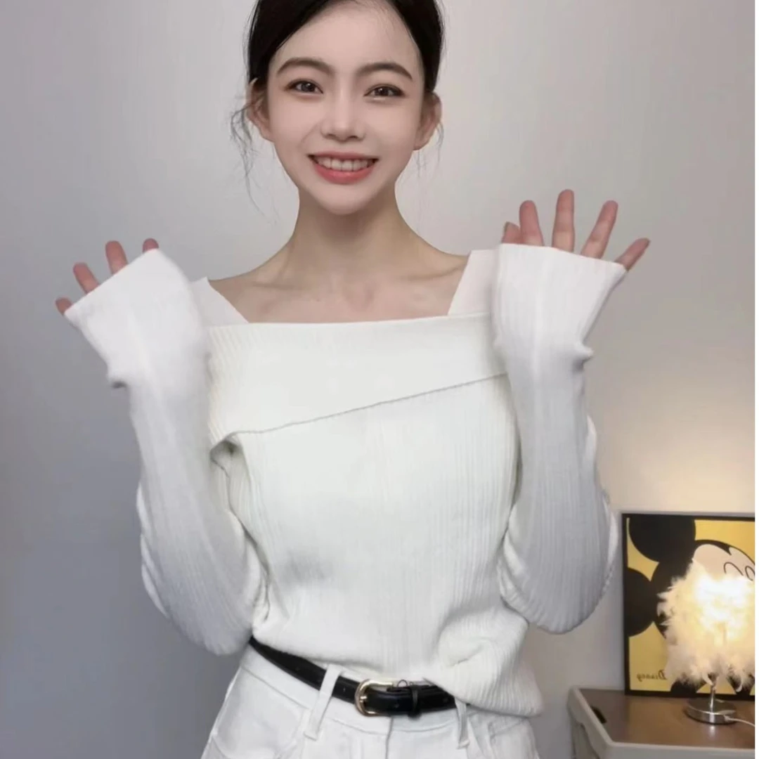 一字肩顯瘦針織