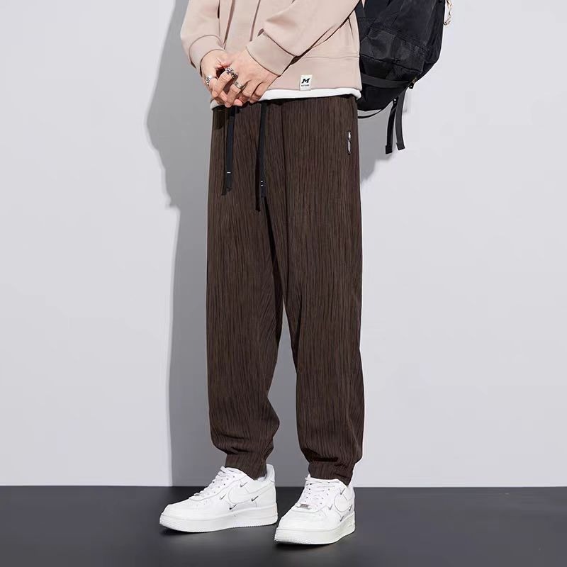 夏季冰絲薄款男士寬鬆哈倫束腳褲休閒 褲潮流時尚百搭垂感舒適男褲