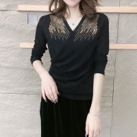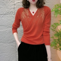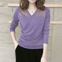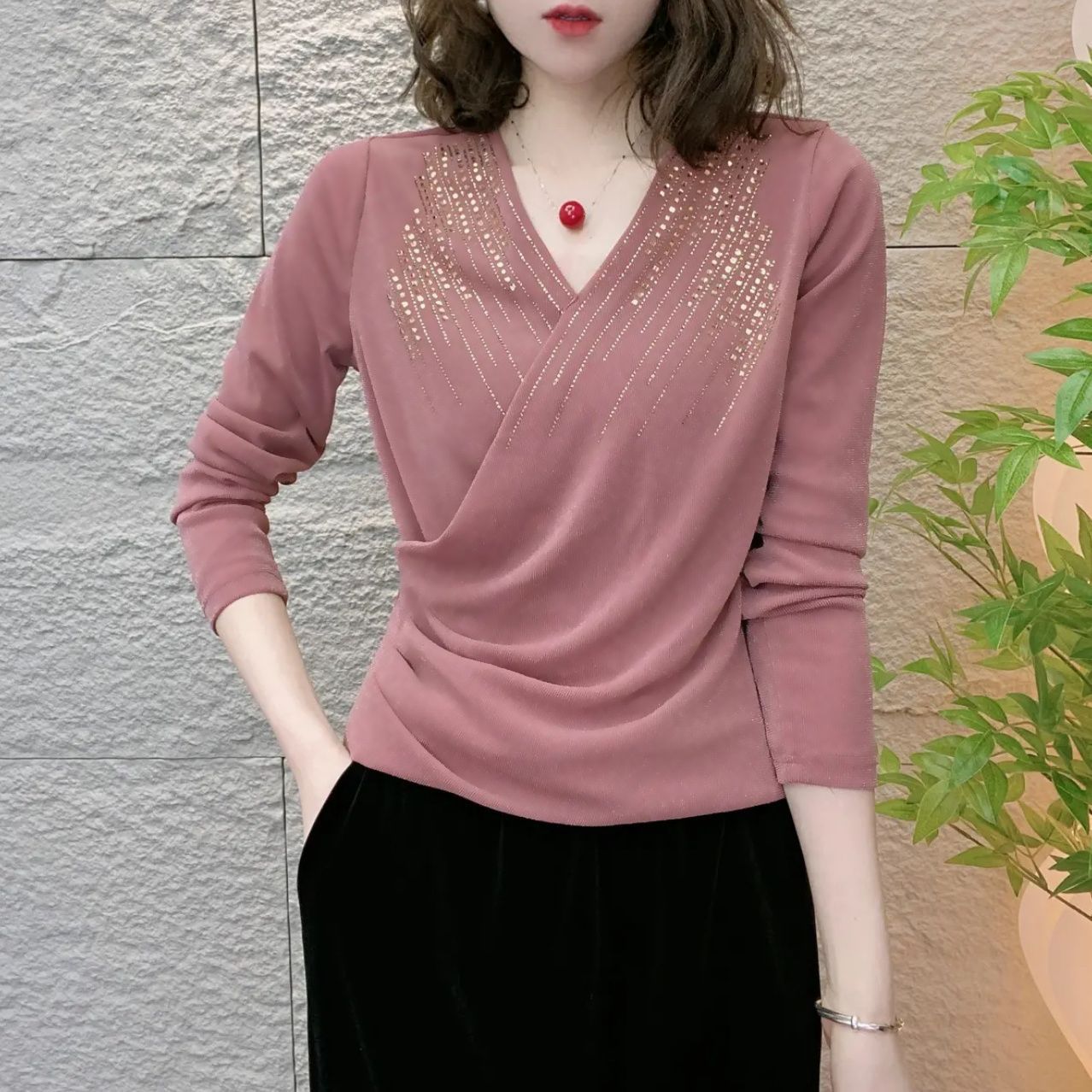 【秋季新款】新款洋氣燙鑽上衣,純色V領燙鑽收腰顯瘦設計 時尚優雅,布料柔軟舒適!